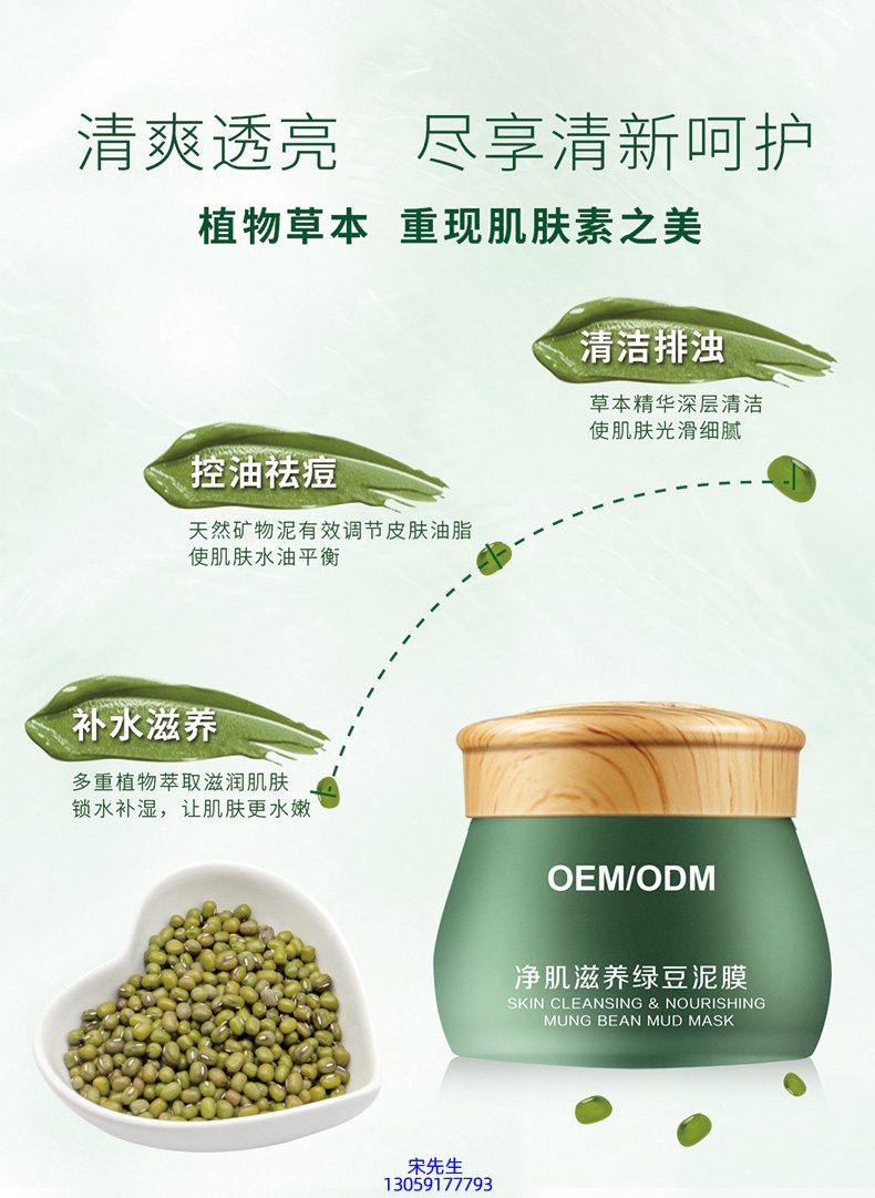 美妍婷_泥膜深层清洁补水保湿绿豆泥膜 泥膜oem/OEM加工贴牌
